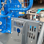 Da sich die Bedürfnisse verändern, werden auch neue Funktionen und Seilwinden gewünscht, dieses Mal konnten wir die Wünsche mit der neuentwickelte F12K Trommelseilwinde erfüllen. Dies ist die erste Trommelseilwinde aus dem Hause REBER mit konstanter (Lage unabhängiger) Zugkraft. Dies ermöglicht die hohe gleichbleibende Zugkraft mit einem handlichen Seil von 14 mm. Die Seilwinde zieht über die gesamten 260 m Seillänge die 12 t. Zudem ist die Winde nicht nur für Forst, sondern auch für die Traktionsunterstützung ausgelegt. Dank des stufenlosen hydrostatischen Antriebes und der Mooring Steuerung wird eine Zuverlässige und sichere Traktionsunterstützung gewährleistet. Dank einer Rückmeldung auf den Funksender wird unter anderem die Zugkraft angezeigt. Dies erhöht die Sicherheit und den Komfort beim Arbeiten im Wald oder auch im Traktionsbetrieb. Der hydraulische getriebelose Direktantrieb steht für leisen und somit auch verschleissarmen Lauf und senkt unter anderem die Service- und Unterhaltskosten. Der bewährte Seilausstoss garantiert ein sauberes Rollen des Seils auf der Trommel, jedoch wird dieser ausgeschalten so bald das Ausstossen nicht mehr nötig ist. Dies reduziert den Leistungsbedarf und somit den Kraftstoffverbrauch des Trägerfahrzeugs. Mit der kundenspezifischen Lackierung gliedert sich die Maschine sehr schön in den Maschinenpark vom Kunden ein.